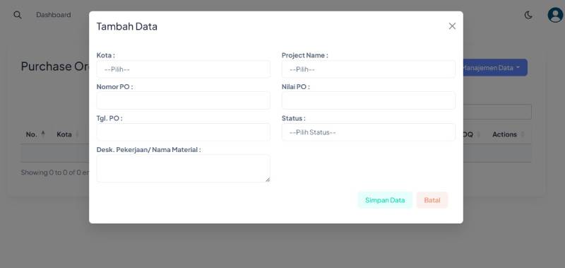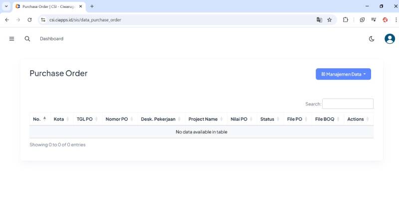Jumlah keseluruhan data keseluruhan data po yang ada di dalam tabel purchase order dan di bawah nya total value po.
