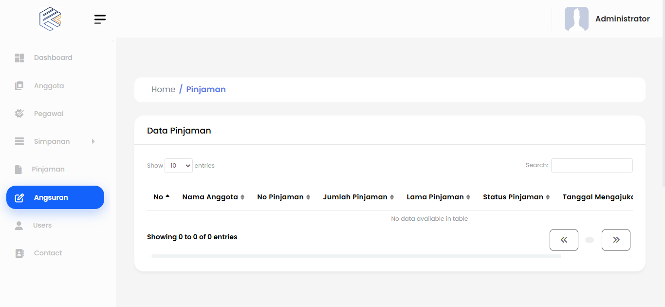 Pada Halaman Angsuran terdapat seluruh data angsuran yang masuk dari pinjaman yang dilakukanb oleh anggota di aplikasi koperasi.