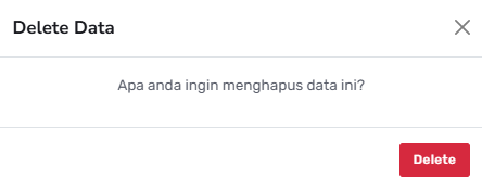1. Klik button Delete berwarna merah kemudian akan muncul peringatan delete data.
