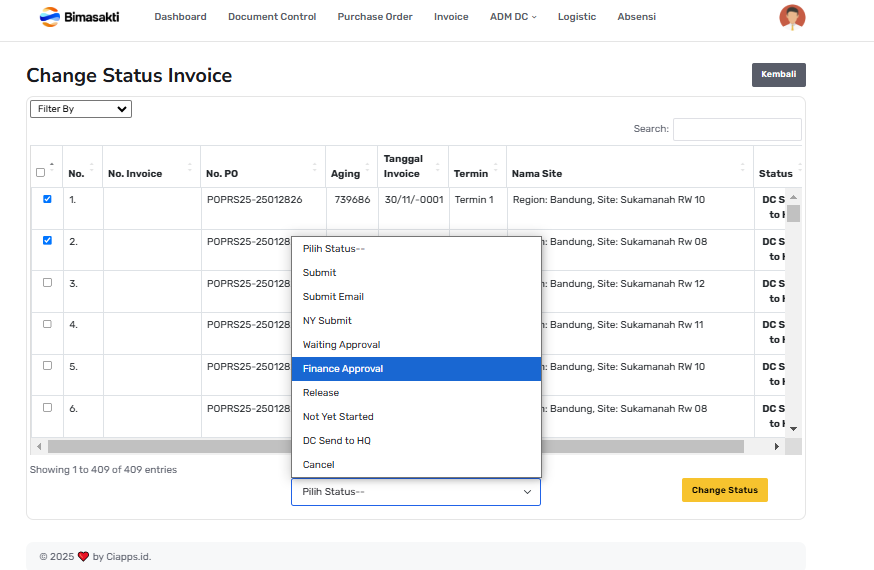 1. Klik Change Status kemudian centang data mana saja yang akan diubah status.
