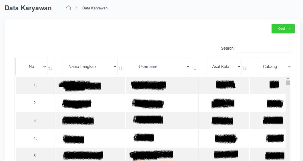 Fitur memungkinkan pengguna mengelola data-data karyawan. data ini mencakup rincian seperti data pribadi dan administratif karyawan yang digunakan untuk mengelola data-data secara efisien dan bisa melakukan download data.