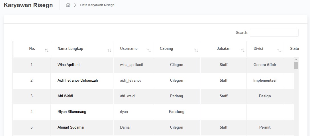 Jumlah karyawan yang terhitung berdasarkan status karyawan Resign.