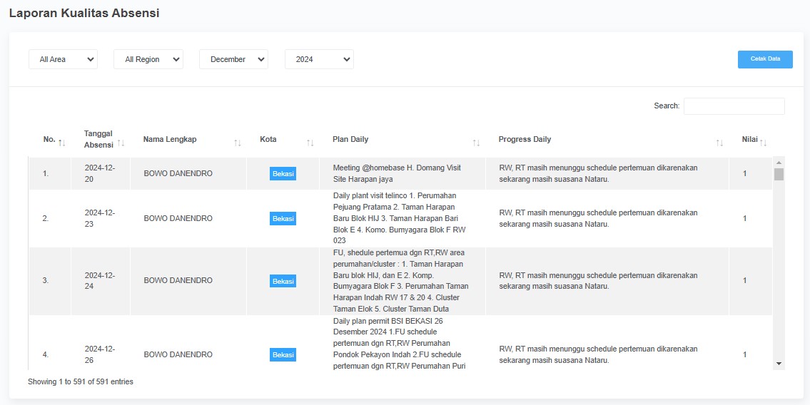 Fitur memungkinkan pengguna memanajemen dan menganalisis kehadiran atau absensi karyawan secara efektif. fitur ini membantu HR dalam mendapatkan laporan yang jelas mengenai kehadiran, izin, lembur dan ketidakhadiran karyawan.