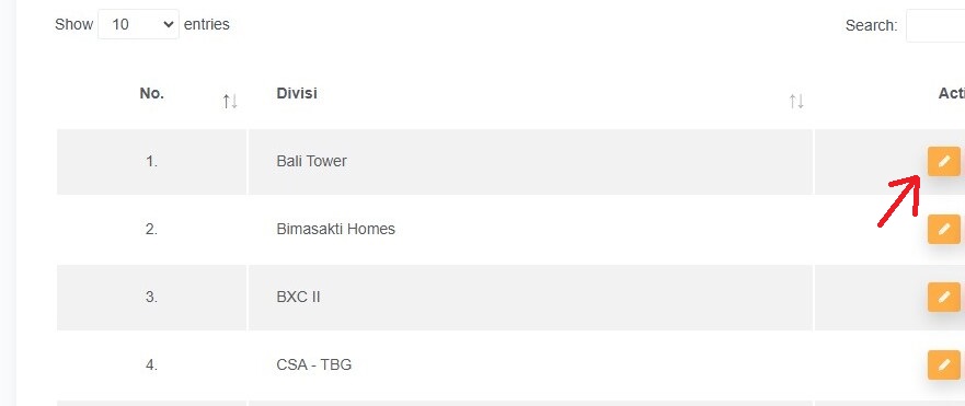 - 3. klik tombol Edit untuk memperbaharui data divisi