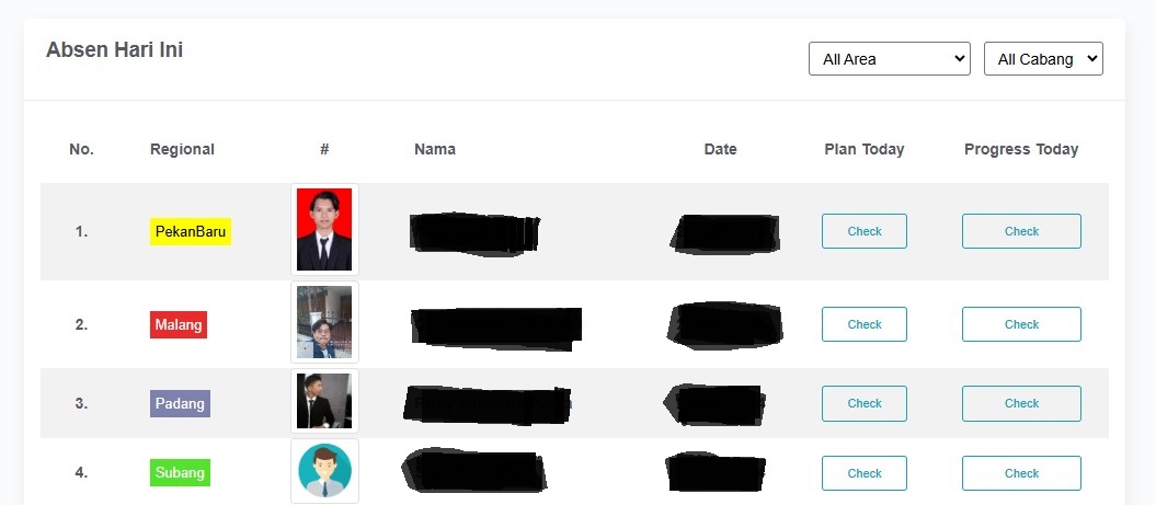 Fitur berisi kumpulan data informasi tentang area geografis atau wilayah tertentu. data ini digunakan untuk mendukung manajemen operasional. - Cabang/Region