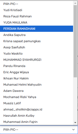 2. Klik PIC untuk menginput PIC ke data yang sudah di centang.