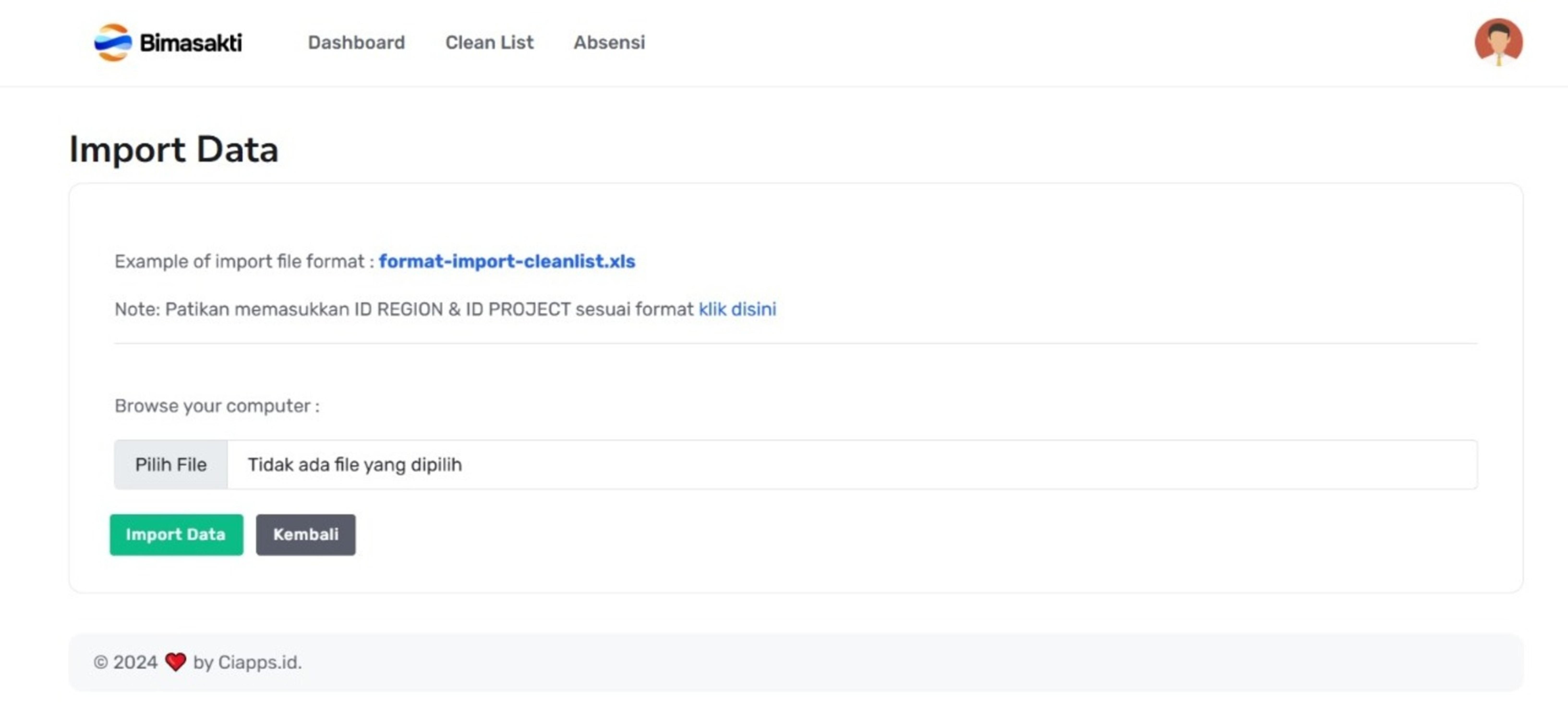 - 5. Upload File format-import-cleanlist.xlsx yang sudah terisi.