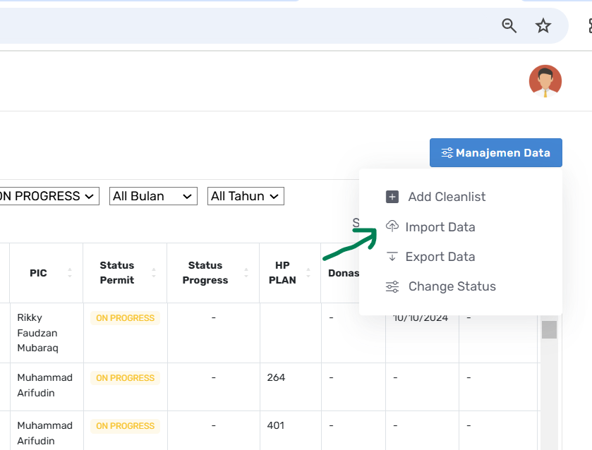 - 1. Masuk ke Manajemen Data pilih Import Data