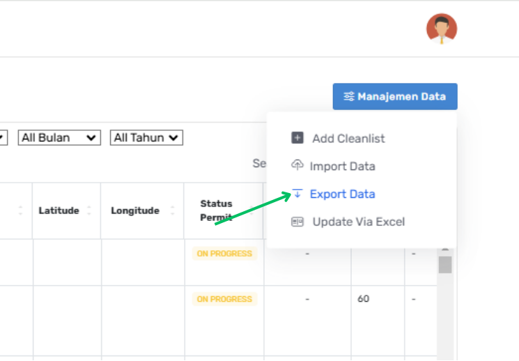 - 1. Masuk ke Manajemen Data pilih Export Data