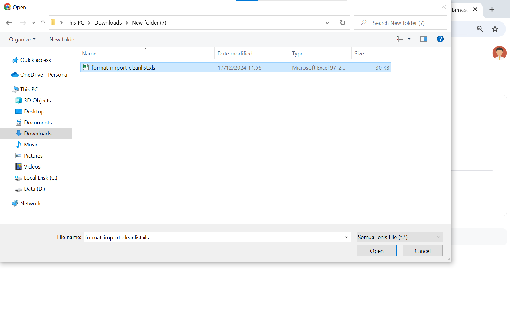 mengeklik teks format-import-cleanlist.xlsx