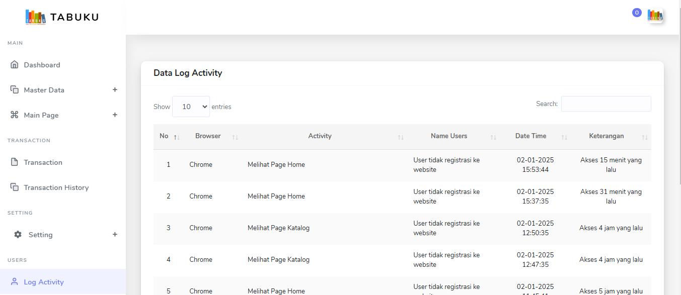 terdapat fitur untuk melihat data kategori tabuku aplikasi